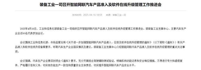 今年4月,工信部装备工业一司召开智能网联汽车产品准入及软件在线升级管理工作推进会,针对智能驾驶领域的宣传、功能使用和技术部署等问题提出了一系列规范性要求,并发布《智能网联汽车产品准入及软件在线升级管理公告》,其中明确规定车企需停止使用“自动驾驶”、“智驾”等模糊表述,统一采用“辅助驾驶”或“智驾等级+辅助驾驶”的命名方式。